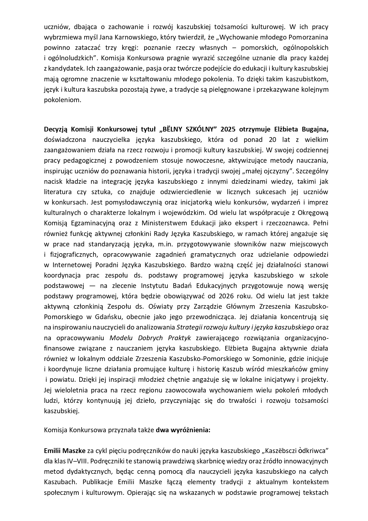 Elżbieta Bugajna z nagrodą „Bëlny Szkólny”!