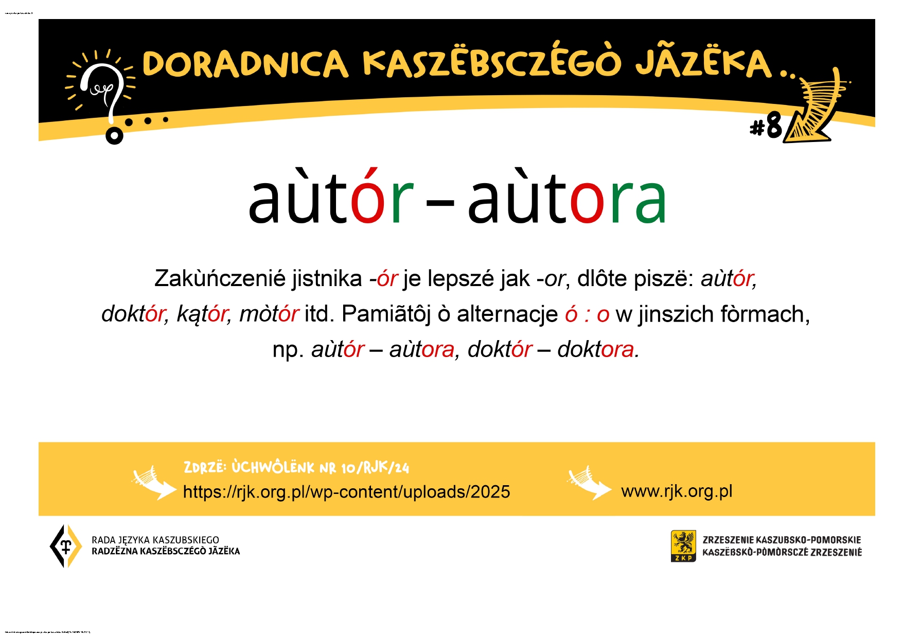 Razã z pùblikacją wskôzë kaszëbsczégò pisënkù jak wiedno zachãcywómë do zazéraniô do naji Doradnicë Kaszëbsczégò Jãzëka (https://rjk.org.pl/poradnia), a téż do zadôwaniô nama pitaniów tikającëch sã rozmajitëch sprôw, tj. pisënkù, słowiznë a gramaticzi. Chãtno na wszëtczé waje jãzëkòwé jiwrë òdpòwiémë!