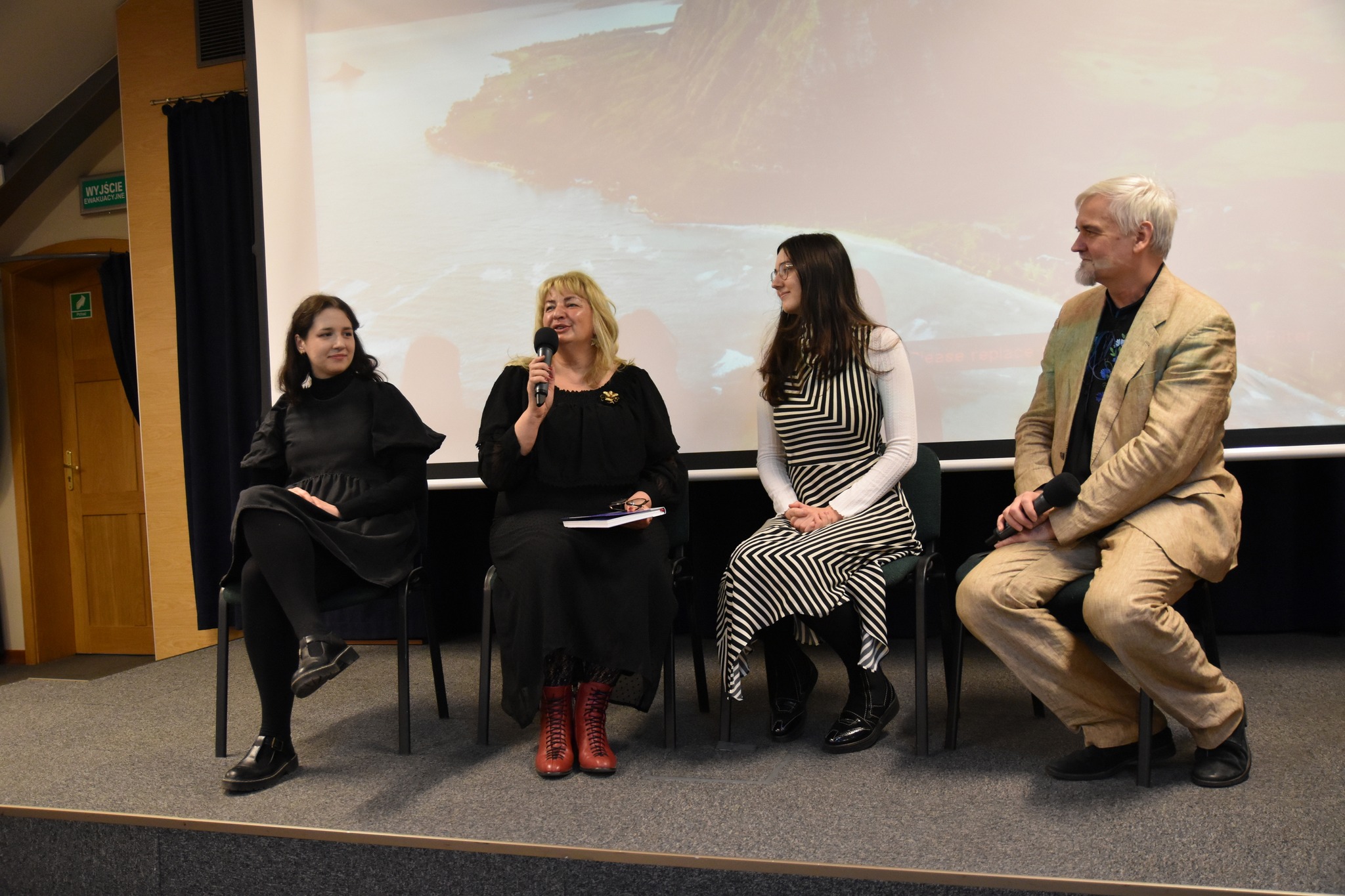 Ostatnim wykładem przeszliśmy do najnowszej publikacji z tej kategorii literatury pt. „Przewodnik literacki. Stegnama bohaterów Heronima Derdowsczégò i Aleksandra Majkòwsczégò” autorstwa Adeli Kuik-Kalinowskiej. Prof. Daniel Kalinowski poprowadził rozmowę z autorką książki jak i osobami zaangażowanymi w jej estetyczne wykończenie – Mają Kalinowską oraz Adrianną Wałdoch,